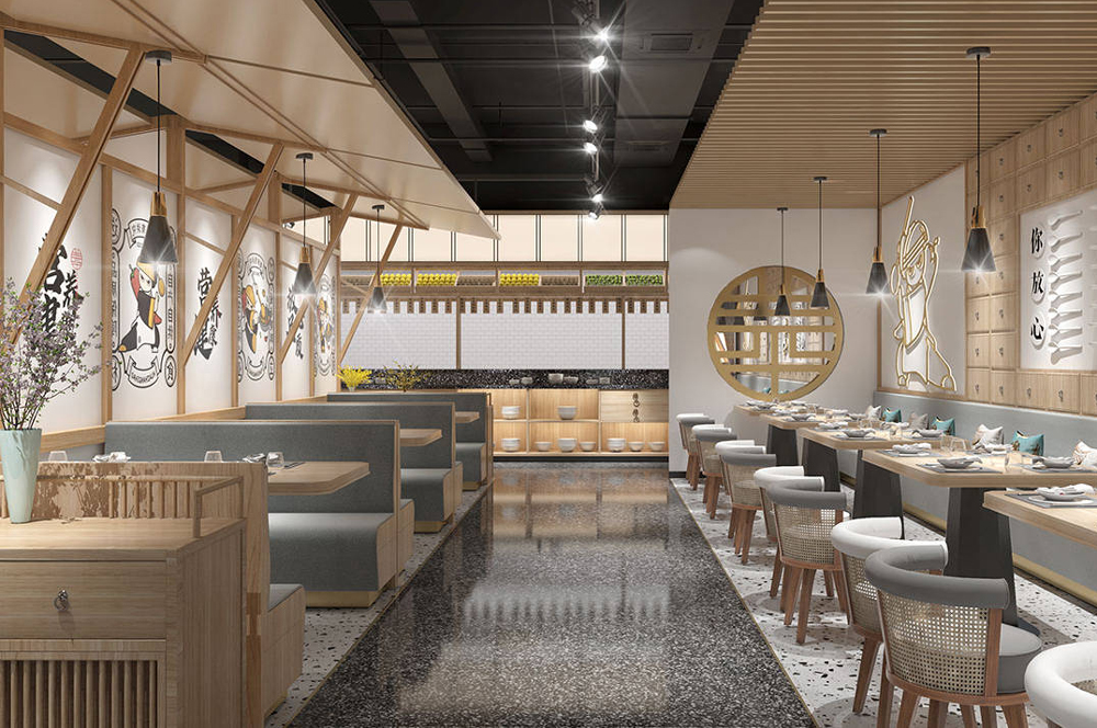 滿足基礎照明是餐飲店都會去做的一件事,尤其是店鋪裝修后期中的人工照明布置環(huán)節(jié),照度、色溫與受光物區(qū)域之間要保持一定的間距,要求在保證一定亮度的同時,恰如其分的滿足人為視覺能見度需求。